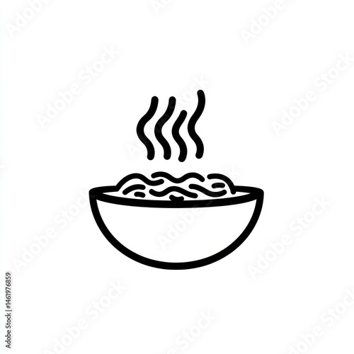 Steaming hot noodle bowl, simple food illustration, white background, menu design