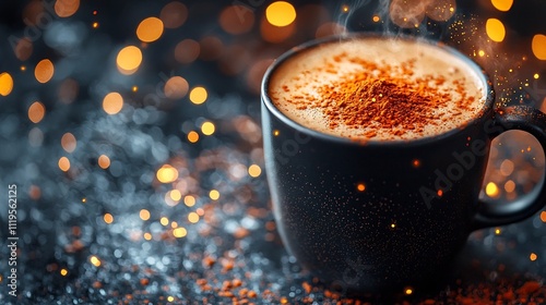 Steaming Mug of Fiery Hot Chocolate with Glowing Sparks and Contrast of Sweetness and Spiciness