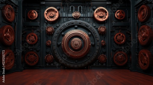 Steampunk Gear Wall with Intricate Mechanisms and Rustic Finishes