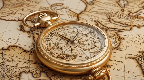 Steampunk Sepia Tones: Intricate Pocket Watch with Compass and Engraved Map, Detailed Design - Digital Illustration