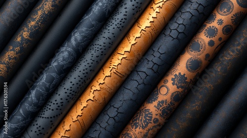 Steampunkinspired gear patterns with metallic textures, vintage industrial theme