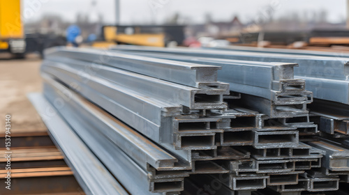 Steel beams in geometric pattern at construction site, showcasing industrial strength and precision