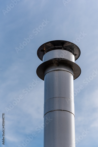 steel chimney against blue sky low angle view in Rotterdam, Netherlands