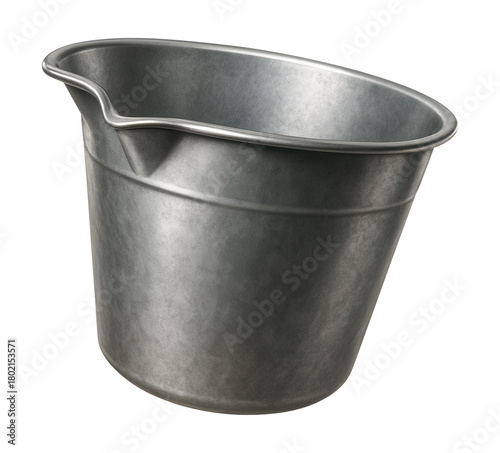 Steel mortar bucket with a wide lip, ideal for easy pouring in masonry tasks.