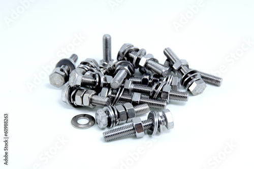 Steel nuts and bolts isolated on white