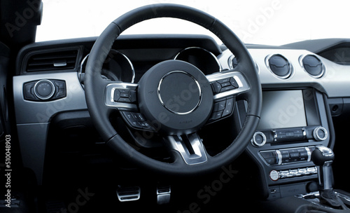 Steering Wheel, Head Monitor, And Gearbox Knob With Soft Focus In Car
