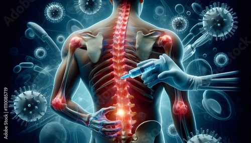 Stem Cell Back Pain as regenerative orthopedic health Medicine and Mesenchymal Cells injected for spinal joint pains to regenerate tissue repair as a medical cell therapy