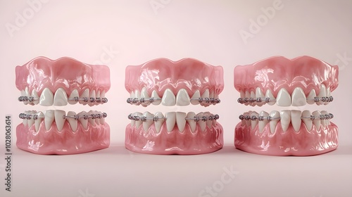 Step-by-step animation showing teeth misalignment before braces, braces tightening, and the final straight teeth achieved after treatment