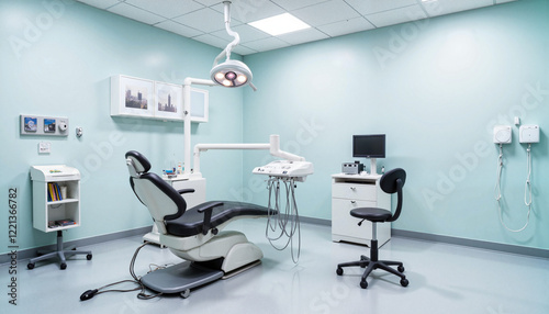 Sterile dental surgery room with equipment ready for treatment, healthcare