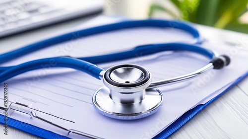 Stethoscope on Notepad with Keyboard in Background for Medical Themes