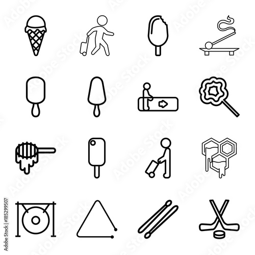 Stick icons. set of 16 editable outline stick icons