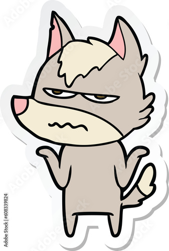 sticker of a cartoon annoyed wolf