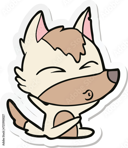 sticker of a cartoon wolf whistling
