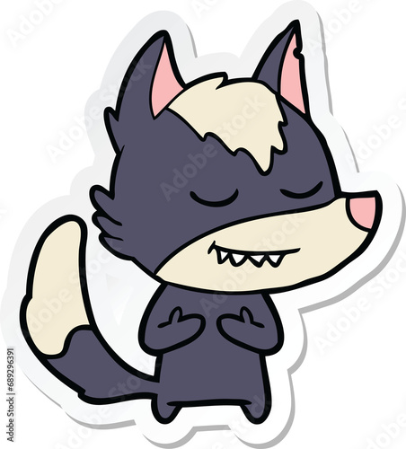 friendly, animal, wolf, wild, cute, cartoon, sticker, stick, on, icon, decal, label, drawing, illustration, retro, doodle, freehand, free, hand, drawn, quirky, art, artwork, funny, character