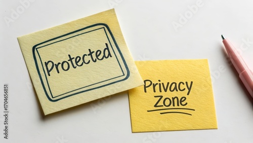 Sticky Notes with Protected and Privacy Zone Messages on Table