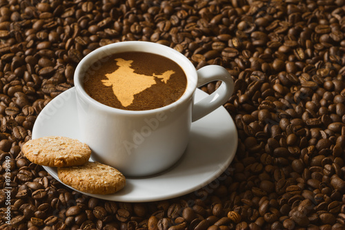 Still life - coffee with map of India