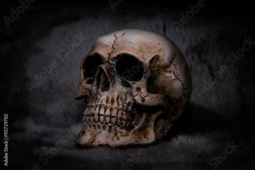 Still life Skull on black background