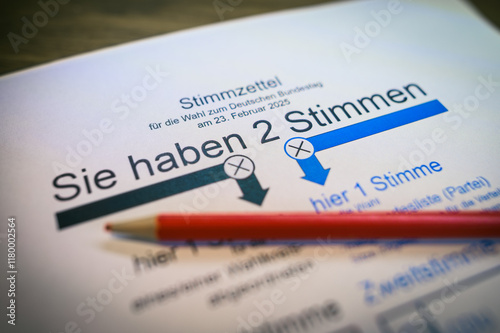 Stimmzettel zur Bundestagswahl mit rotem Stift zum ankreuzen