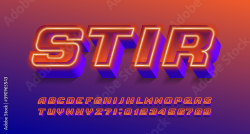 Stir alphabet font. Neon effect letters and numbers. Stock vector typescript for your typography design.