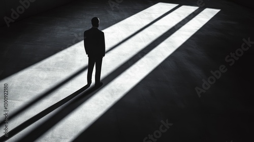 Stock illustration of a man's shadow with a simple background, showcasing the silhouette and capturing a sense of mystery, strength, and symbolism through the interplay of light and dark.