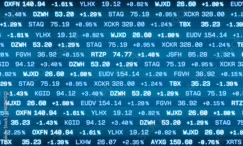 Stock market and exchange ticker board in blue. Business, data, investment, risk, volatile, growth, market research. 3D illustration