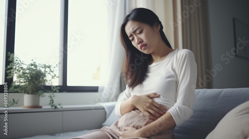 stomach ache. abdominal pain, indigestion, gastritis, menstrual cramps, flatulence, diarrhea, distention, colon cancer, belly inflammation problem, suffer food poisoning, abdomen, generate by AI