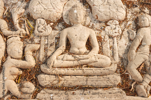 Stone carving of Buddha history in thai temple