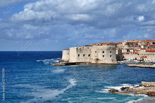Stone city walls of Dubrovnik old town by the Adriatic Sea