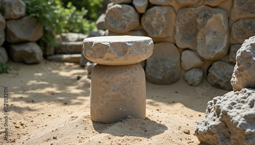 Stone pedestal in a rocky landscape