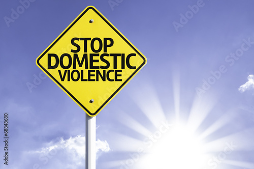 Stop Domestic Violence road sign with sun background