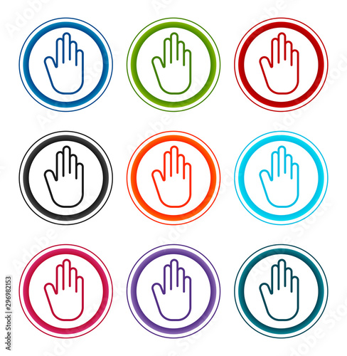 Stop hand icon flat round buttons set illustration design
