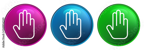 Stop hand icon magic glass design round button set illustration