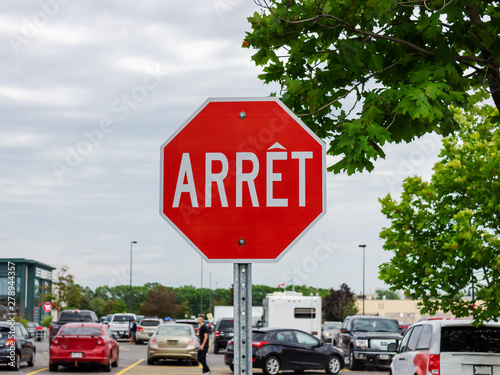 stop sign on the road on the parking
