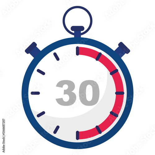 Stopwatch countdown icon. Number thirty focus. Timer measurement tool. Accurate clock symbol.