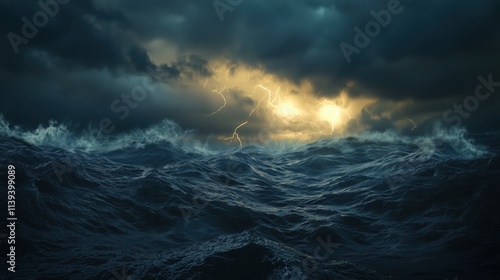 Stormy Seascape at Night Dramatic Lightning and Waves in Ocean