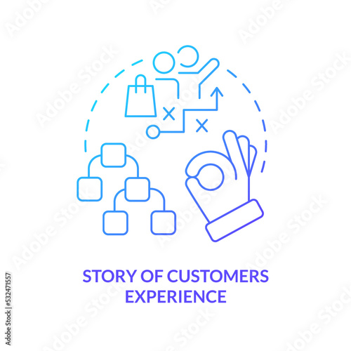 Story of customers experience blue gradient concept icon. Sharing opinion. Element of case study abstract idea thin line illustration. Isolated outline drawing. Myriad Pro-Bold font used