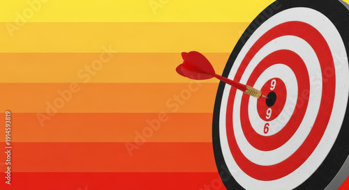 Strategic Aim A Dart Perfectly Hitting the Bullseye on a Target, Set Against a Vibrant Gradient Background, Representing Precision, Goal Achievement, and Focused Marketing