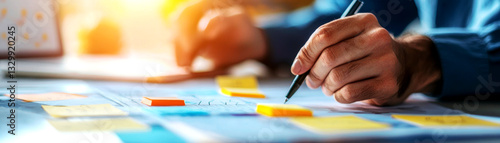 Strategic Business Planning Session Office Workspace Team Workflow Collaboration Bright Environment Close-Up Viewpoint Streamlining Processes for Success