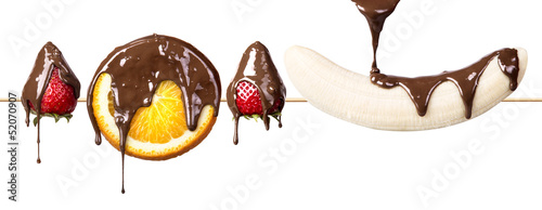 strawberries, orange and banana with chocolate
