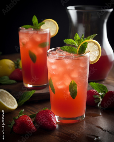 Strawberry Basil Lemonade. Generative AI image