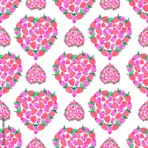 Strawberry heart watercolor seamless pattern