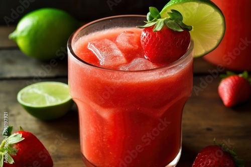 strawberry lime fruity cocktail and summertime smoothie drink refreshment beverage, generative ai