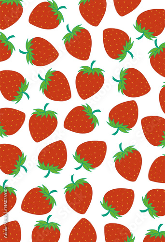 Strawberry seamless set icon. Bright red fruit with green leaves arranged on white background, ideal for food decor, organic packaging, dessert themes, fruity concepts.