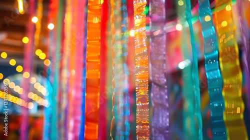 Streamers hanging from the ceiling, creating a festive atmosphere.