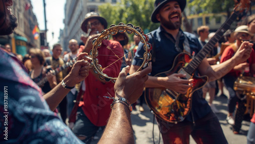 Street Music Performance with Tambourine and Guitar