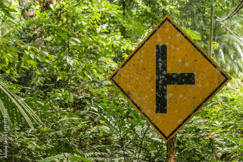 Street sign of a crossroad in the middle of the djungle , Tioman, Malaysia