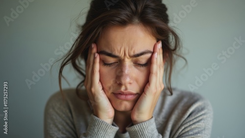 Stressed Young Woman Holding Her Head with a Worried Expression