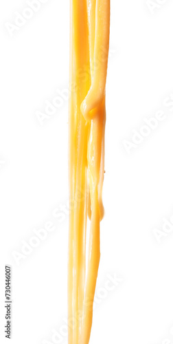 Stretching delicious melted cheese isolated on white