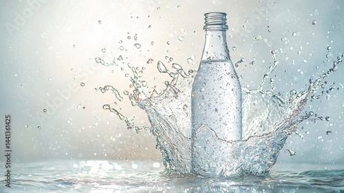 Striking artistic shot of a bottle of water erupting with a beautiful splash against a backdrop of clear water for visual impact