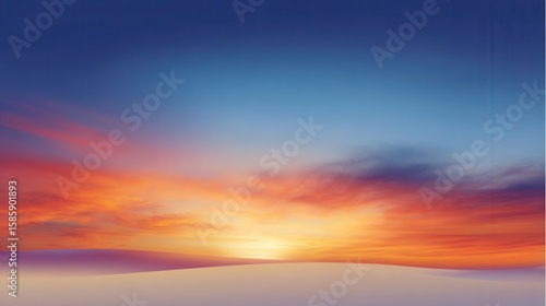 Striking desert landscape at sunset, where colorful clouds paint the sky with hues of orange and blue.